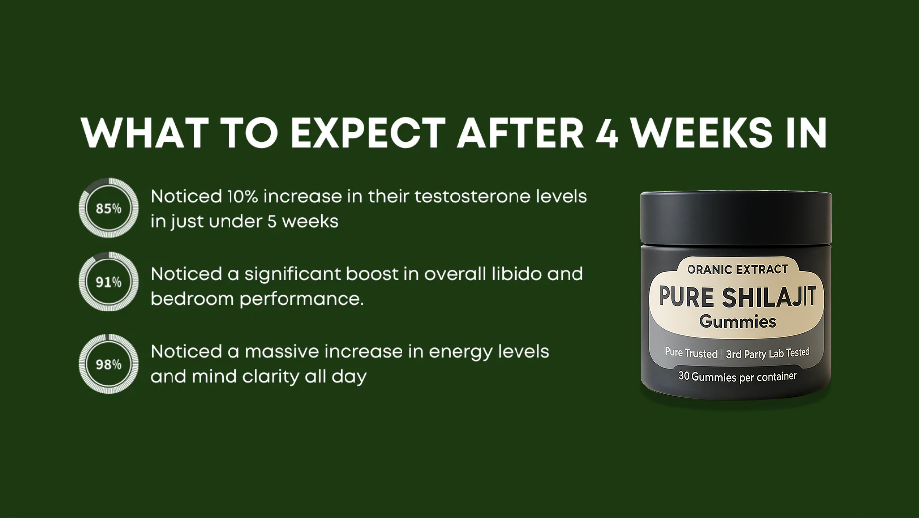 After 30 days, those taking purified Shilajit exhibited significantly increased testosterone levels compared to the placebo group.